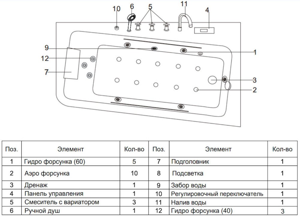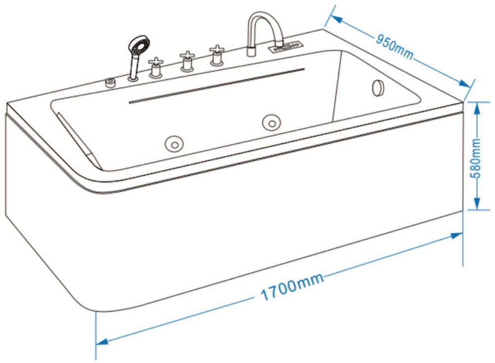 Ванна гидромассажная акриловая Grossman 170 x 95 см, белая, левая/правая