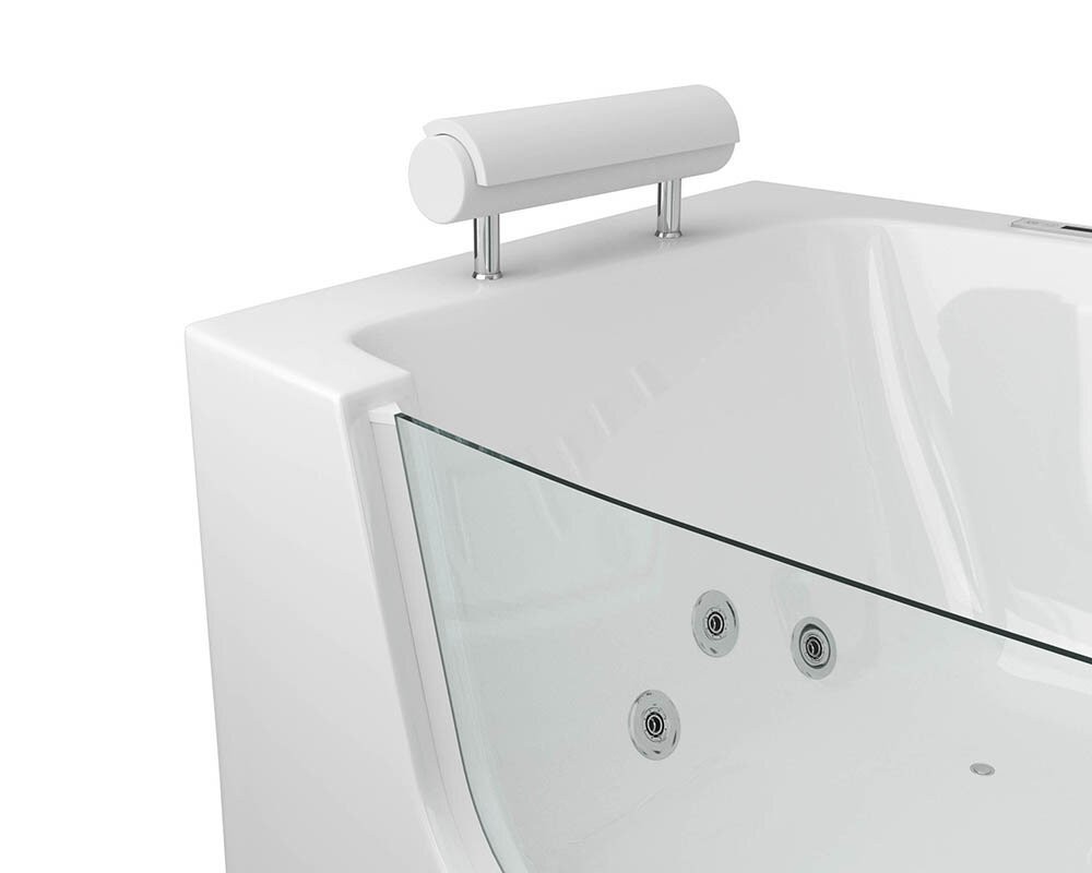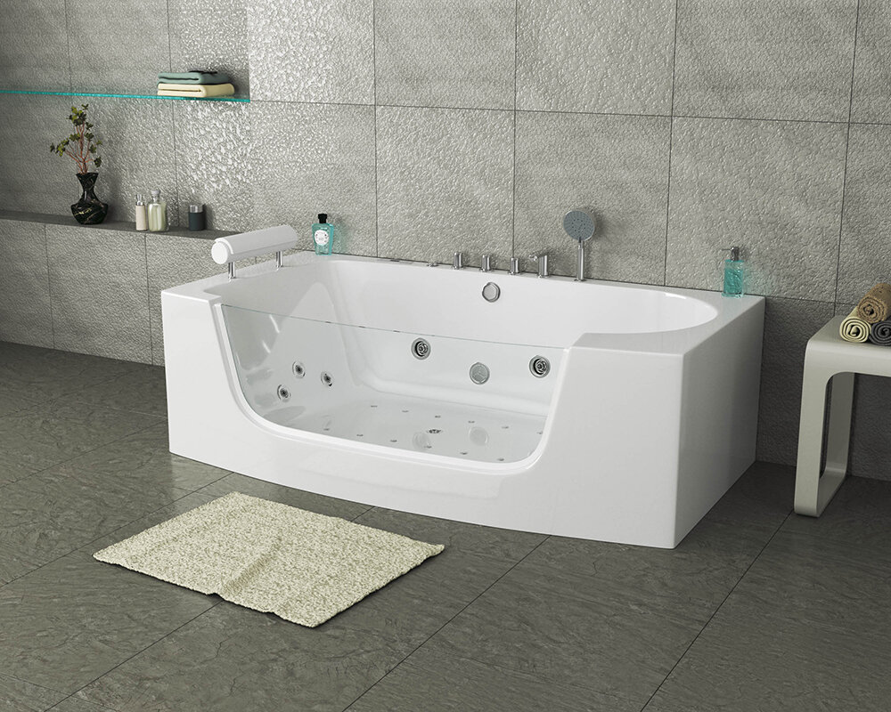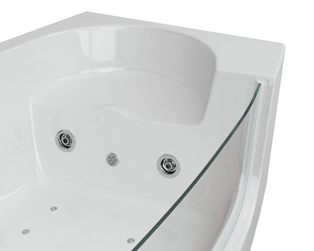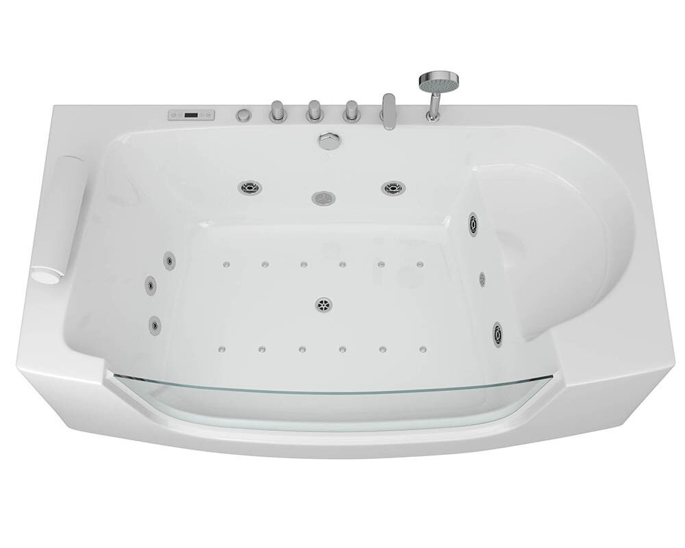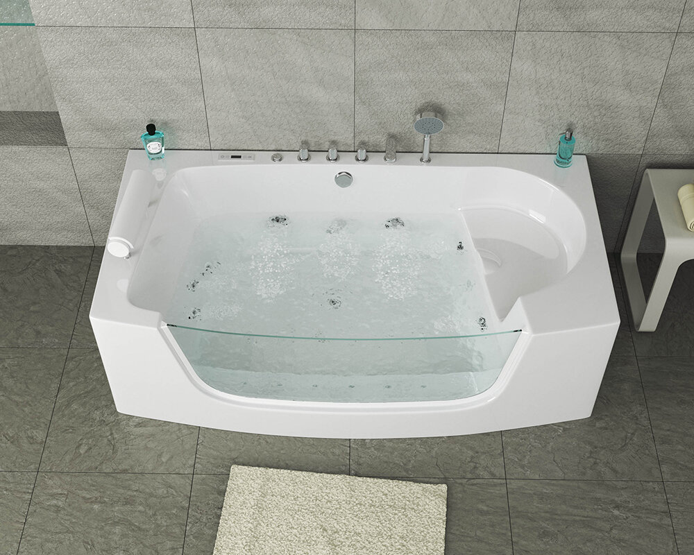 - Пристенная ванна объемом 260 литров со стеклянной стенкой;