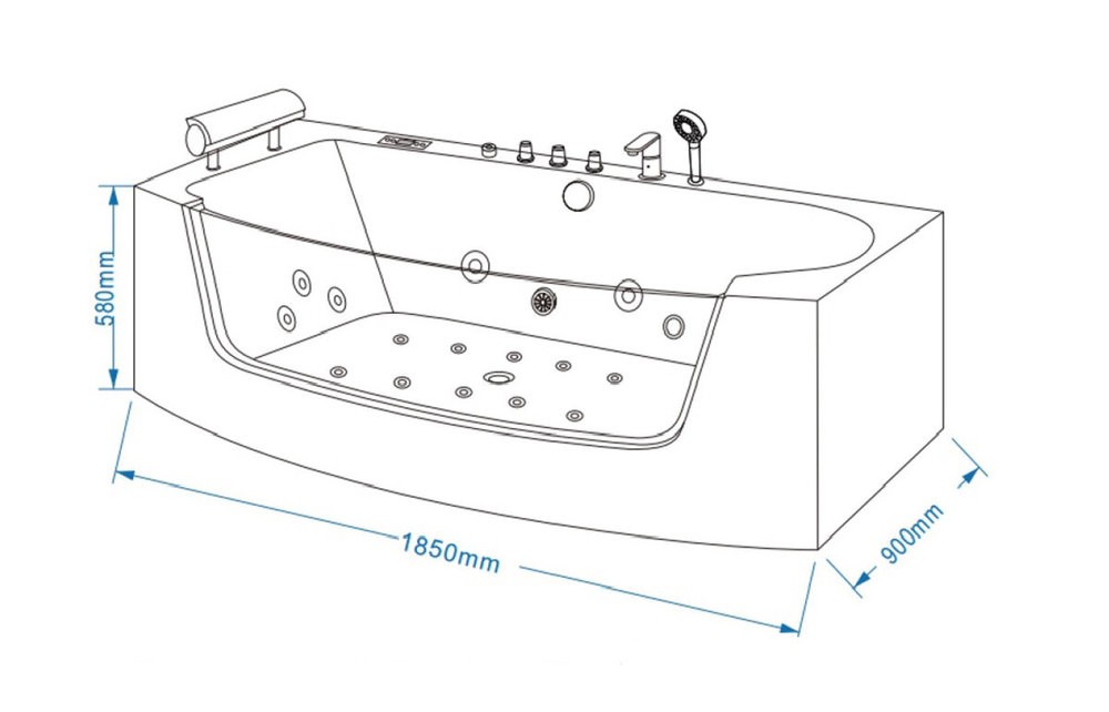 Ванна гидромассажная акриловая Grossman 185 х 90 см, GR-18590