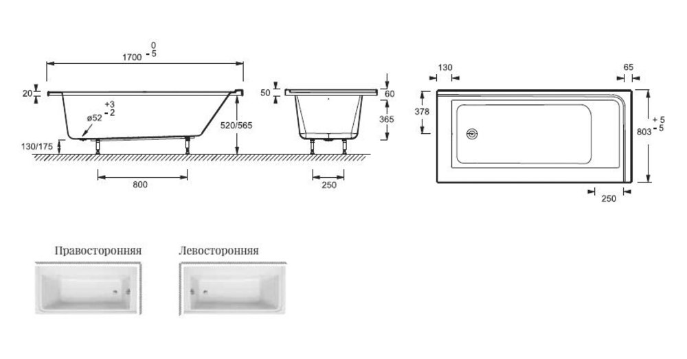 Ванна гидромассажная акриловая Jacob Delafon Formilia E5TN6139RU 170 х 80 см, система Tonus +, правосторонняя