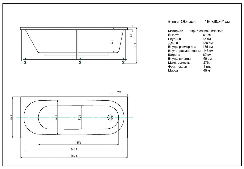 Классическая прямоугольная форма акриловой ванны Оберон будет в моде долгие года, а неизменное качество ванн Акватек способствует этому. А радовать Ваш взгляд будут плавные овальные линии внутренней поверхности и фронтального экрана ванны Оберон.