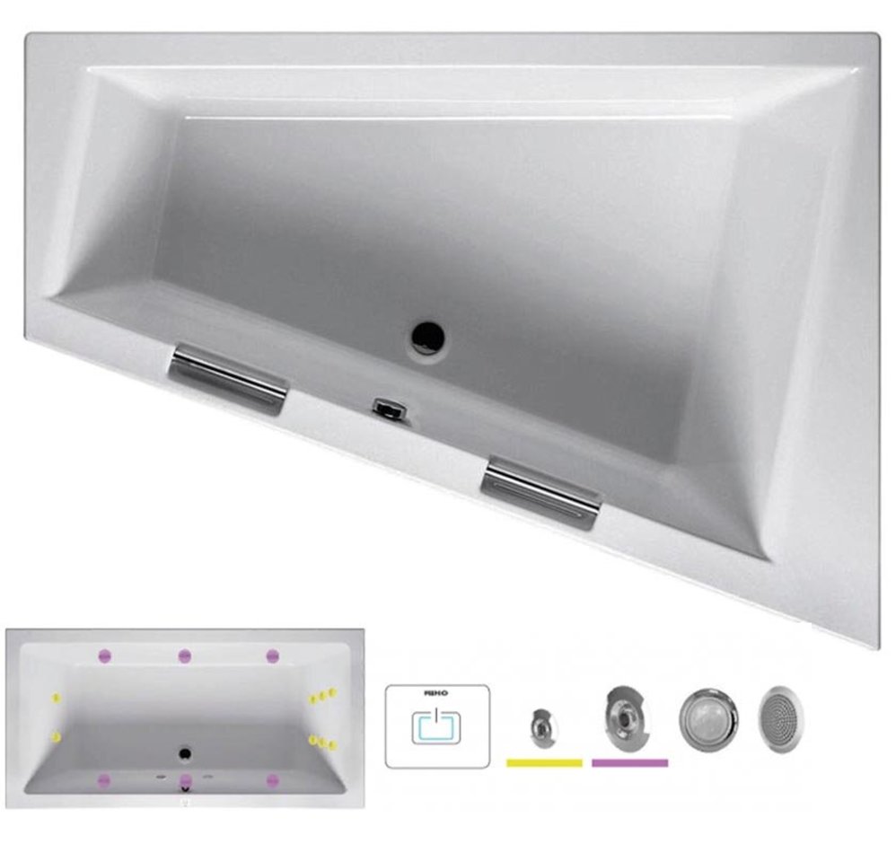 Ванна гидромассажная Riho Doppio 180 x 130 см, FLOW, левая/правая