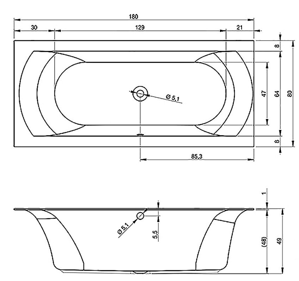 Ванна гидромассажная Riho Linares 180 x 80 см, AIR