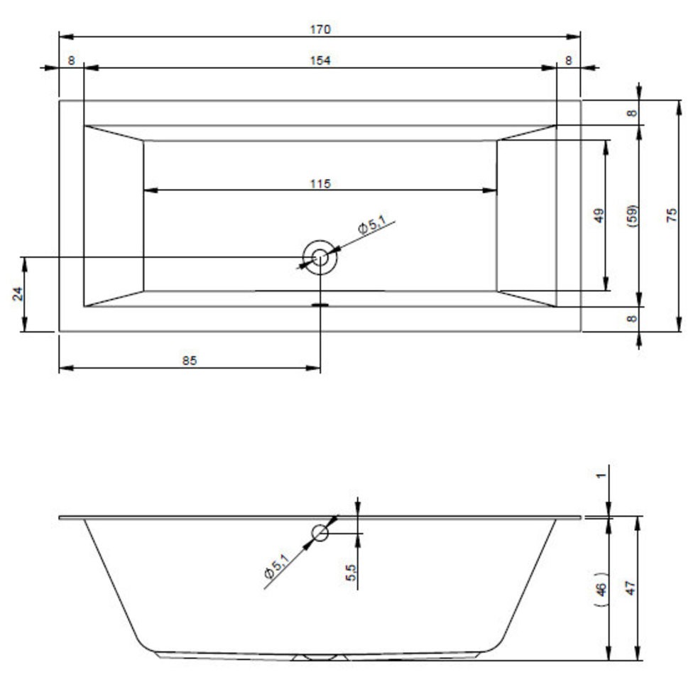 Ванна гидромассажная Riho Lugo 170 x 75 см, FLOW