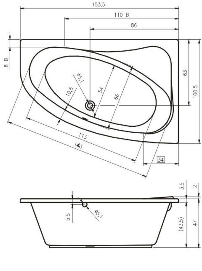Ванна гидромассажная Riho Lyra 153 x 100 см, JOY, левая/правая