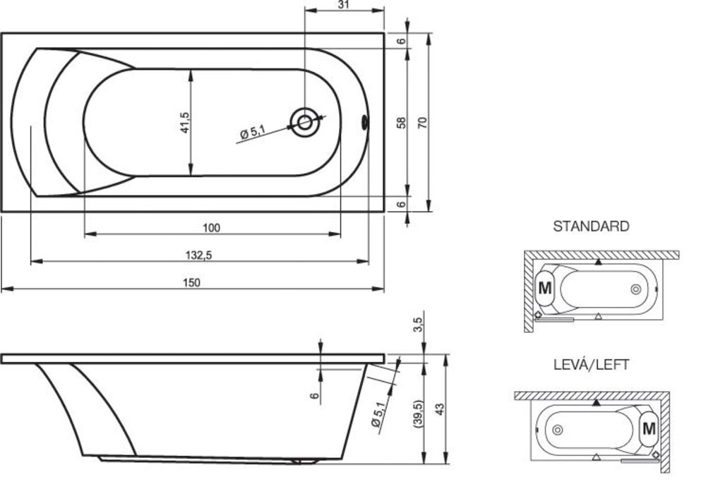 Ванна гидромассажная Riho Miami 150 x 70 см, AIR