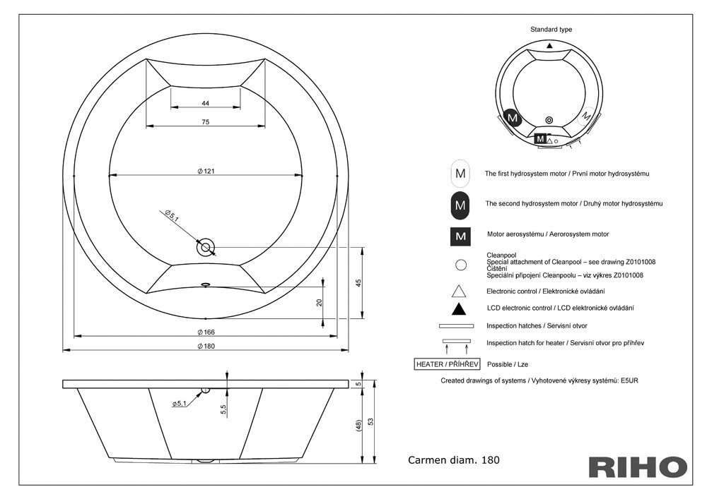 Круглая акриловая ванна Ванна RIHO Carmen D180 см изготовлена из 6 мм акрилового листа с антибактериальным свойством LUCITE Microban.Основные характеристики товара: