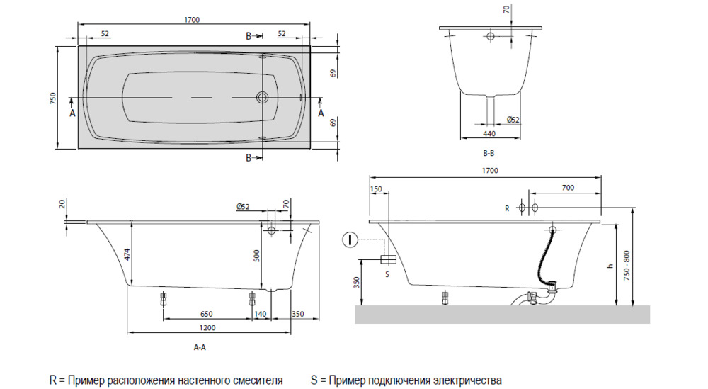 - Размер длина x ширина: 1700*750 мм