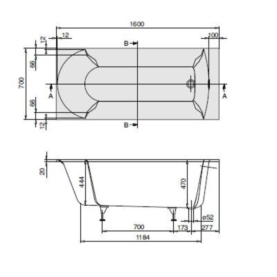 Ванна Villeroy&Boch Pavia UBQ160PAV2V-01, 160 х 70 см, Quaryl®