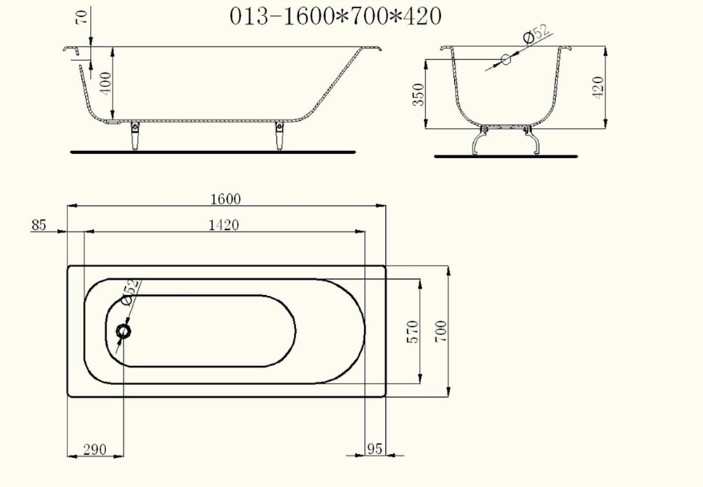 Белоснежная чугунная ванна с идеально ровным покрытием высокопрочной эмали. Комплектуется чугунными ножками с прочными подъемными болтами для регулирования по уровню.Наружные размеры: Длина (см) – 160Ширина (см) - 70Глубина (см) – 42