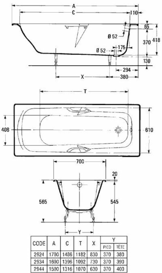 Чугунная ванна Jacob Delafon Prelude, 170 х 70 см, с отверстиями для ручек, ножки в подарок, E2924-00