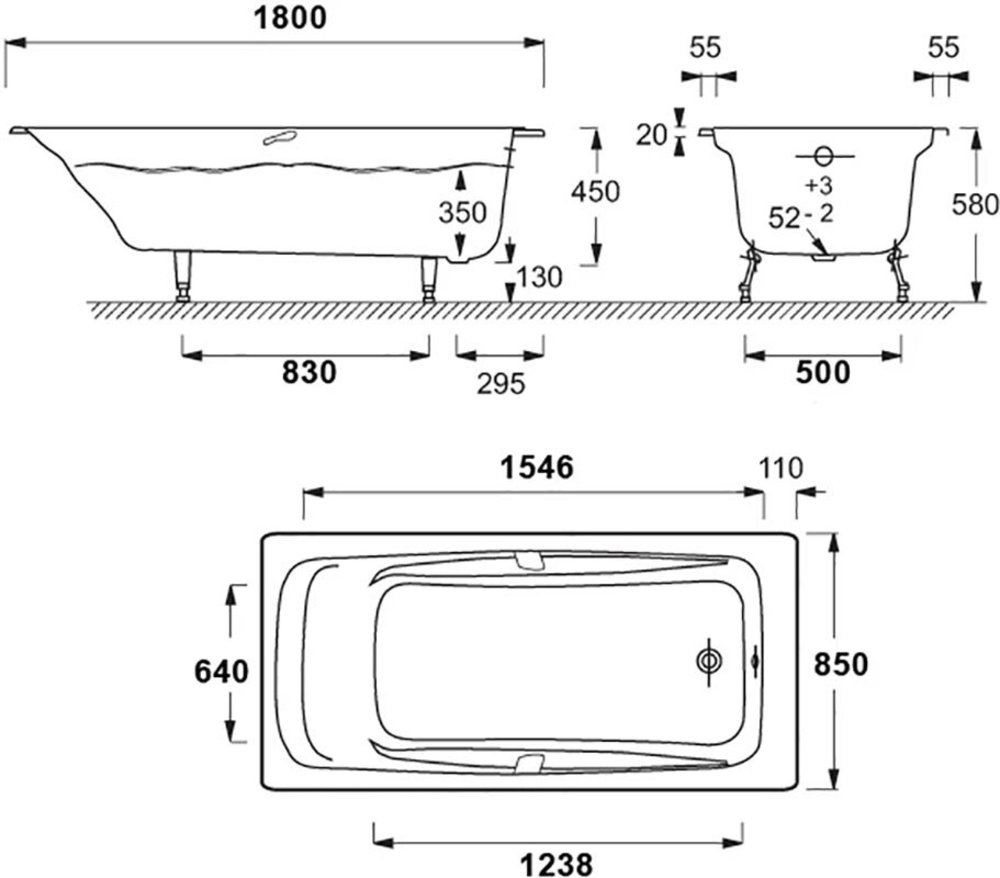 Чугунная ванна Jacob Delafon Repos, 180 x 85 см, без отверстий для ручек и антискользящего покрытия, ножки и слив-перелив в подарок, E2904-S-00