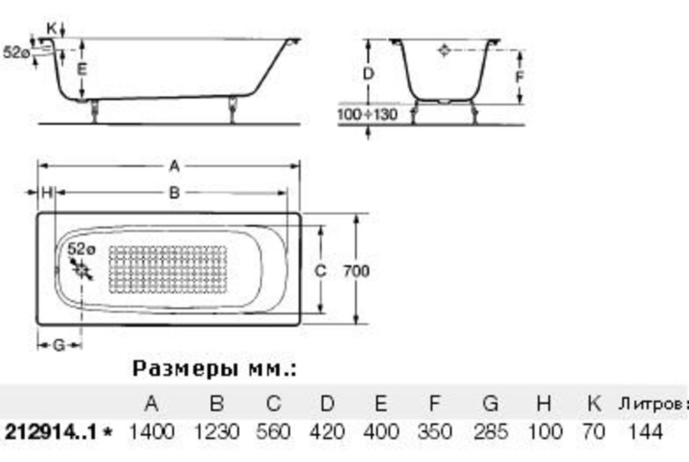 Чугунная ванна Roca Continental 140 х 70 см, 212914001, с противоскользящим покрытием