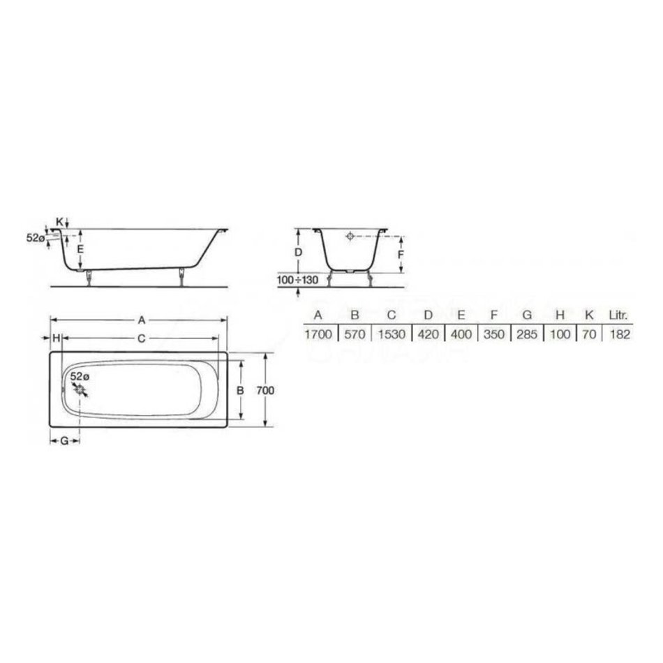 Чугунная ванна Roca Continental 7.2129.0.100.R 170 х 70 см