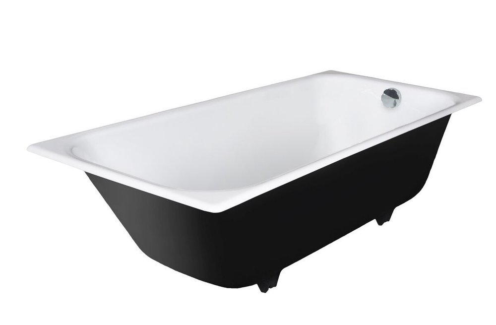 Прямоугольная чугунная ванна. Универсальный дизайн, глубокая чаша и зауженный борт.