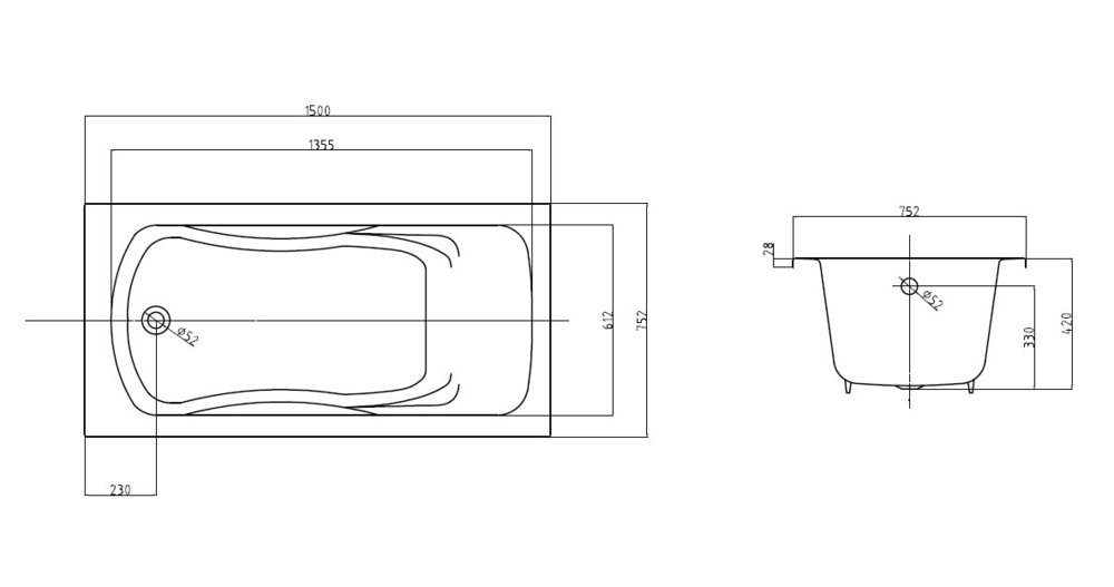 Ванна чугунная Azario Split 150 x 75 х 41 см с ножками и ручками