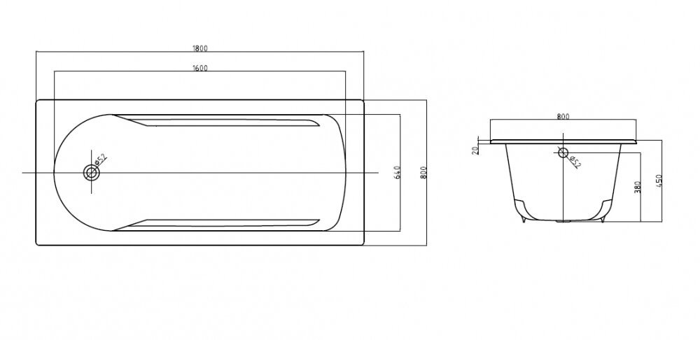 Ванна чугунная Azario Split 180 x 80 х 42 см с ножками и ручками