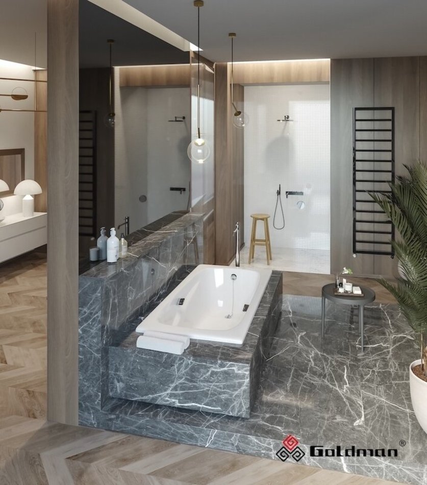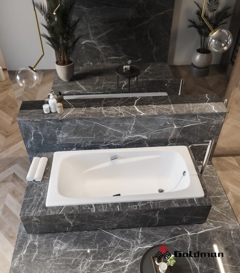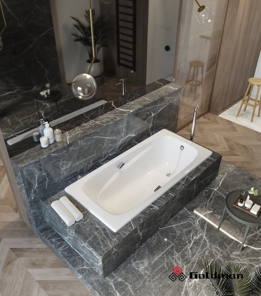 Чугунная ванна Goldman Art станет прекрасным дополнением при обустройстве ванной комнаты большого размера. Нестандартная ширина 85 сантиметров и необычный внутренний дизайн, выраженный в плавных линиях, нисходящих к спинке ванны, придают элегантность, а ручки необычной квадратной формы дополнительный шарм.