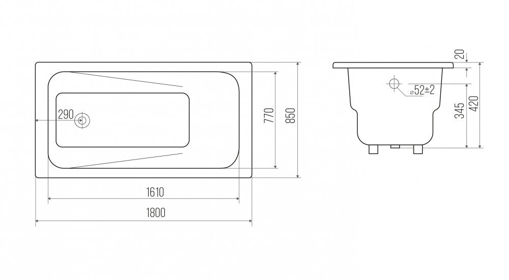Ванна чугунная Goldman Art, 180 х 85 см, цвет белый, AT18085