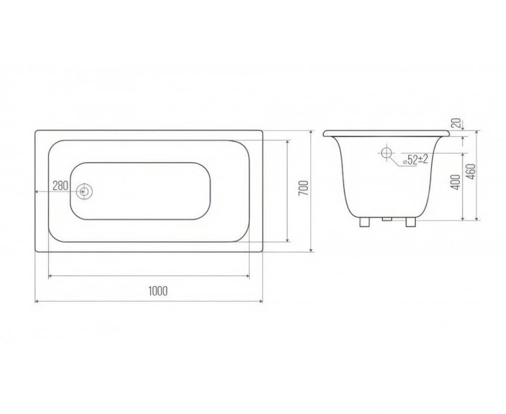 Ванна чугунная Goldman Comfort CF10070, 100 х 70 см, белая