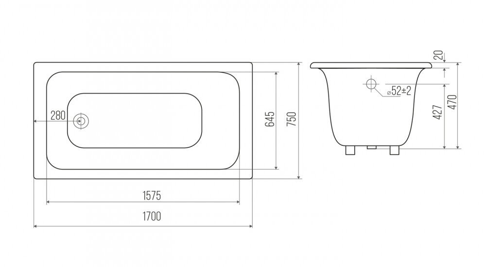 Ванна чугунная Goldman Comfort CF17075, 170 х 75 см, белая