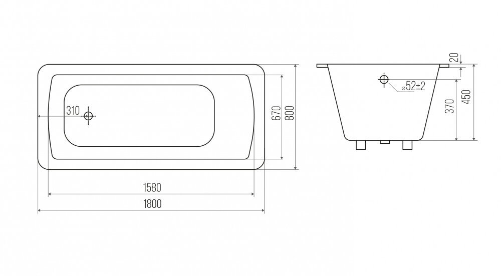 Ванна чугунная Goldman Elite ET18080, 180 х 80 см, цвет белый