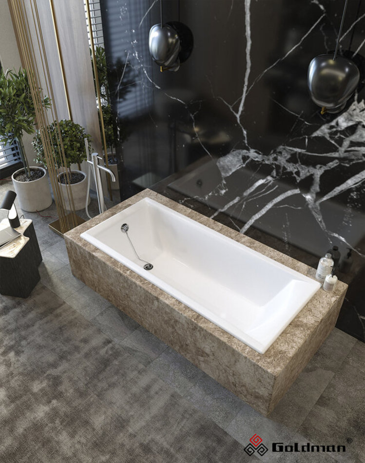 Квадратная форма чаши чугунной ванны Goldman Elite c зауженными бортами придает ей оригинальный внешний вид, следуя современным тенденциям в дизайне оформления ванных комнат.