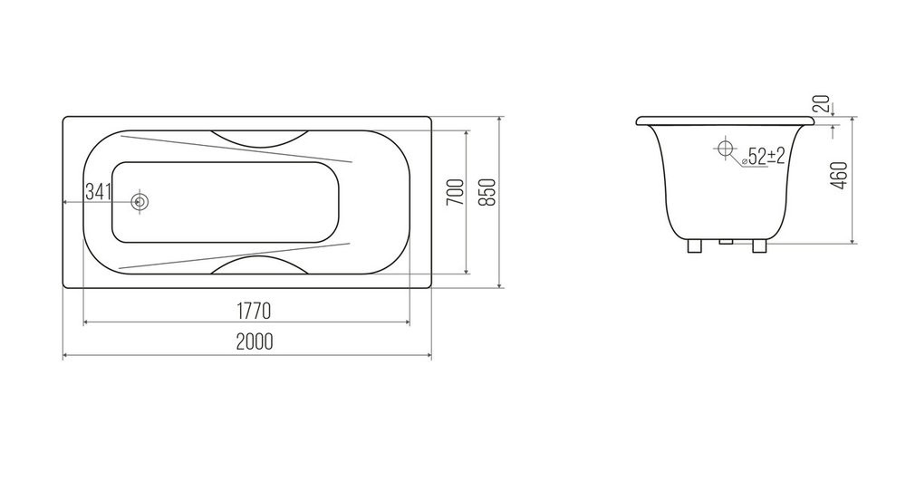Ванна чугунная Goldman Maxima MX20085H, 200 х 85 см, с отверстиями для ручек, цвет белый