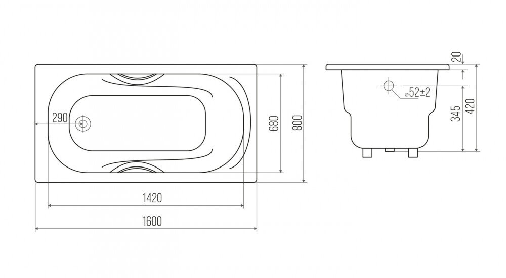 Ванна чугунная Goldman Nova NV16080, 160 х 80 см, белая