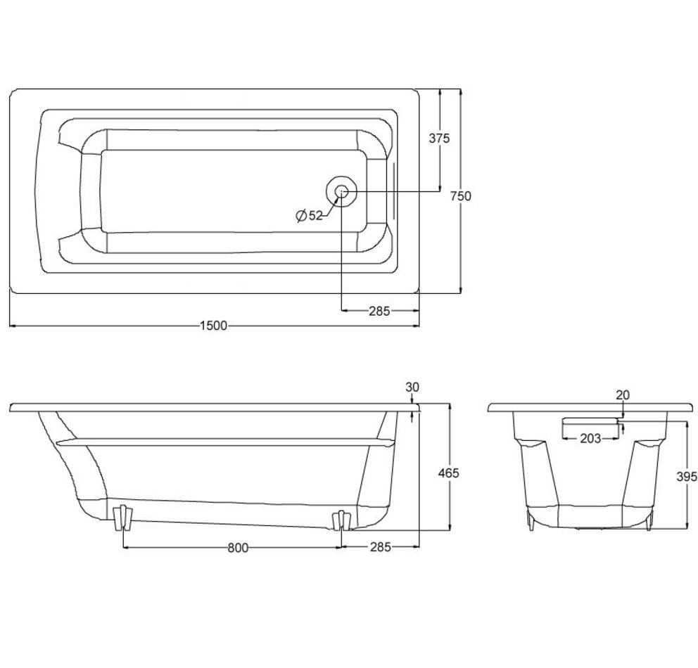 Ванна чугунная Jacob Delafon Archer, 150 x 75 см без отверстий для ручек, белая, ножки и слив-перелив в подарок, E6D906-0