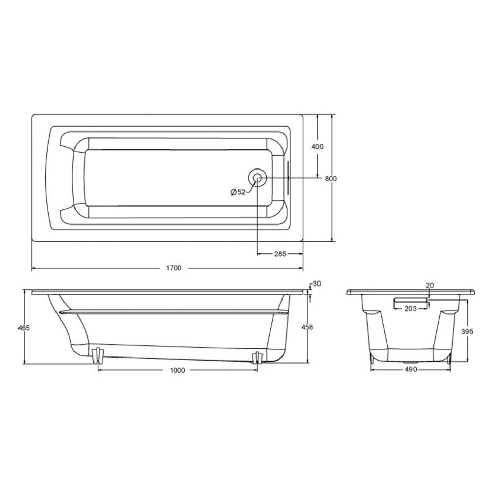 Ванна чугунная Jacob Delafon Archer, 170 x 80 см, без отверстий для ручек, ножки и слив-перелив в подарок, белая, E6D904-0
