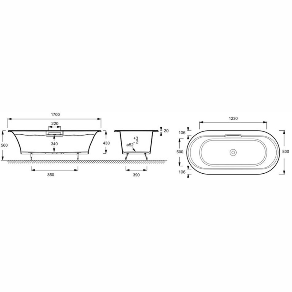 Также выпускается Ванна чугунная Jacob Delafon Volute 170 х 80 см, отдельностоящая, с панелью и сливом-переливом, 6D063-00