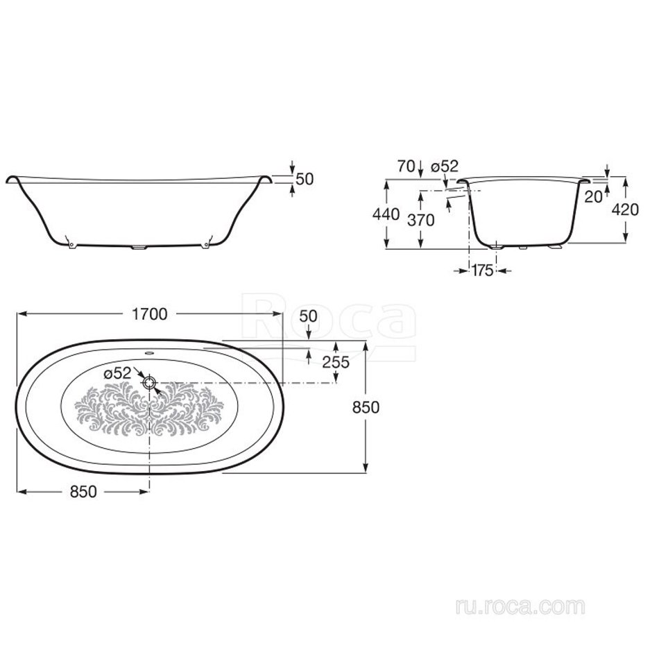 Roca Newcast White 170x85 233650007 - чугунная ванна овальной формы. Выполнена в классическом ретро стиле. Дизайн ванны переносит пользователя в середину 20 века. Роскошная и помпезная классика здесь продиктована во всем: округлые формы, глубокая чаша, наличие бронзовой таблички с брендом Roca посередине. Ретро стиль ванны тесно переплетается с современными технологиями изготовления ванн.
