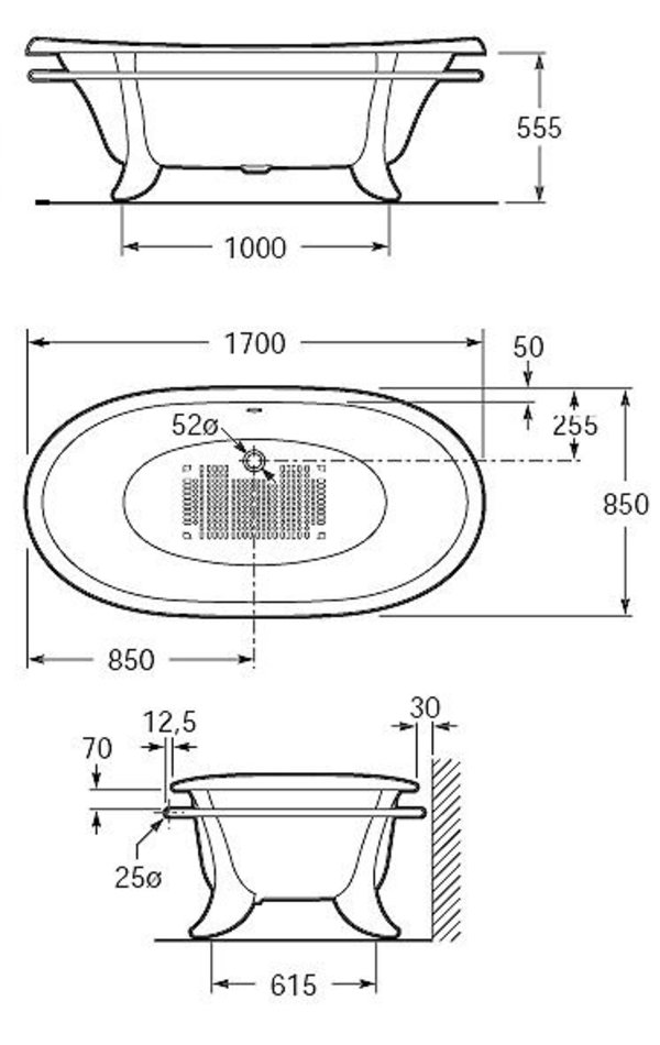 Ванна Roca Newcast Grey Futura 233650000, 170 х 85 х 42 см