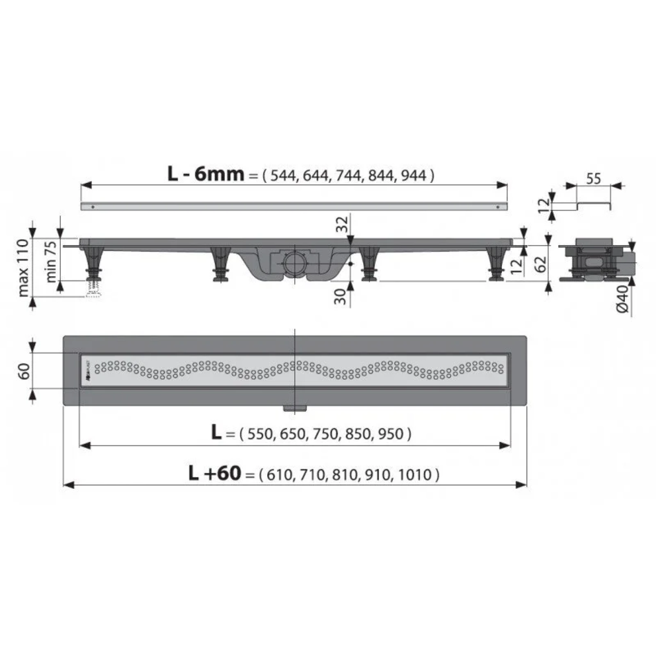 Дренажный канал AlcaPlast 550 APZ9-550M Simple с решеткой и опорами
