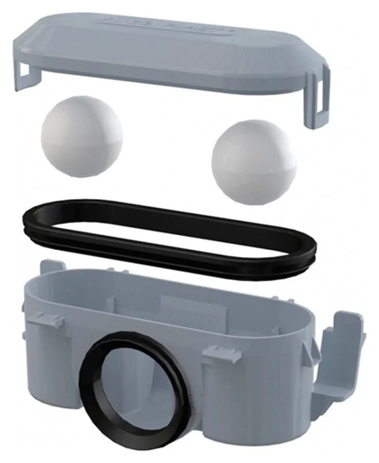 Лоток рекомендуется устанавливаеть в тех помещениях, где не предполагается частой эксплуатации слива, а следовательно, происходит его высыхание. Это могут быть: дома отдыха, санатории, дачи и т.д. Во время высыхания гидрозатвора, уровень воды в сифоне постепенно уменьшается и пластиковые шарики западают в дренажные отверстия. После полного высыхания, шарики плотно закрывают отверстия, создавая тем самым сухой гидрозатвор и препятствуют проникновению запахов из канализации.
