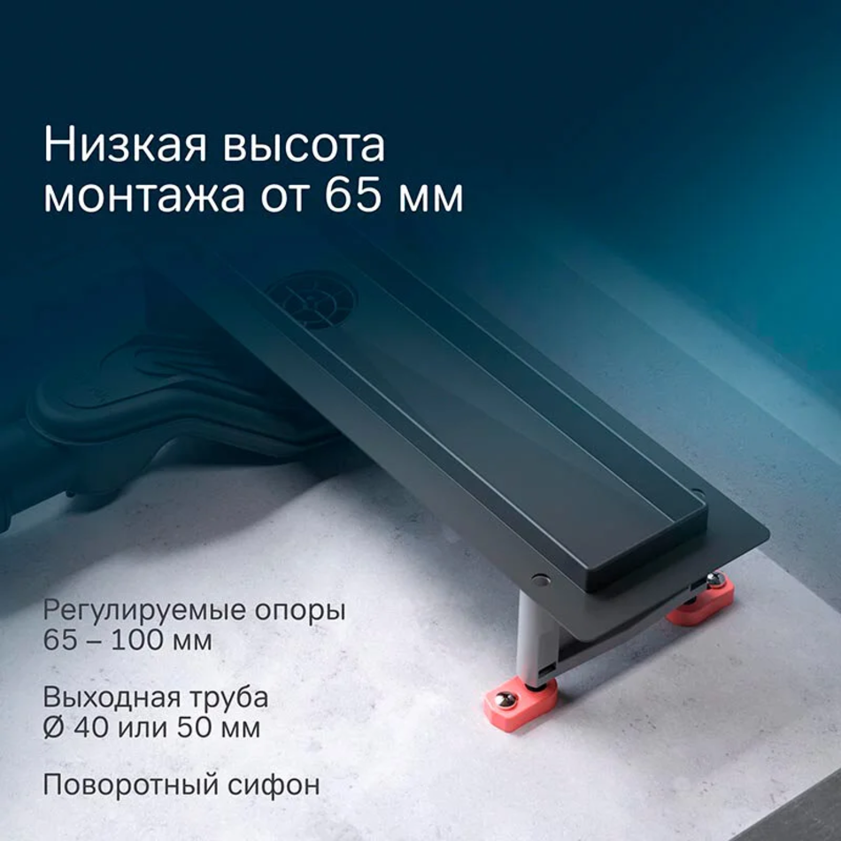 - низкая высота монтажа от 65 мм — экономия бюджета при заливке пола;