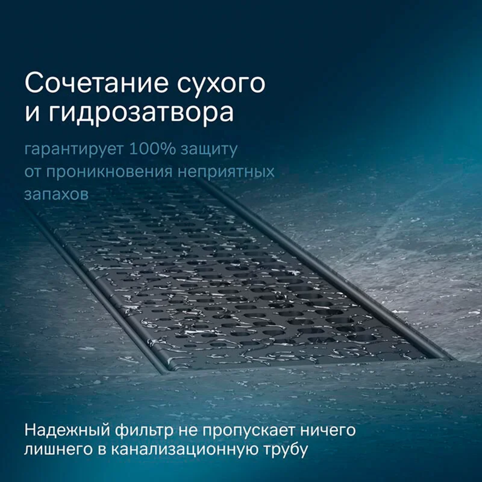 - трап имеет инновационную конструкцию решётки с фильтром, что значительно увеличивает интервалы между необходимыми промывками этих фильтров.