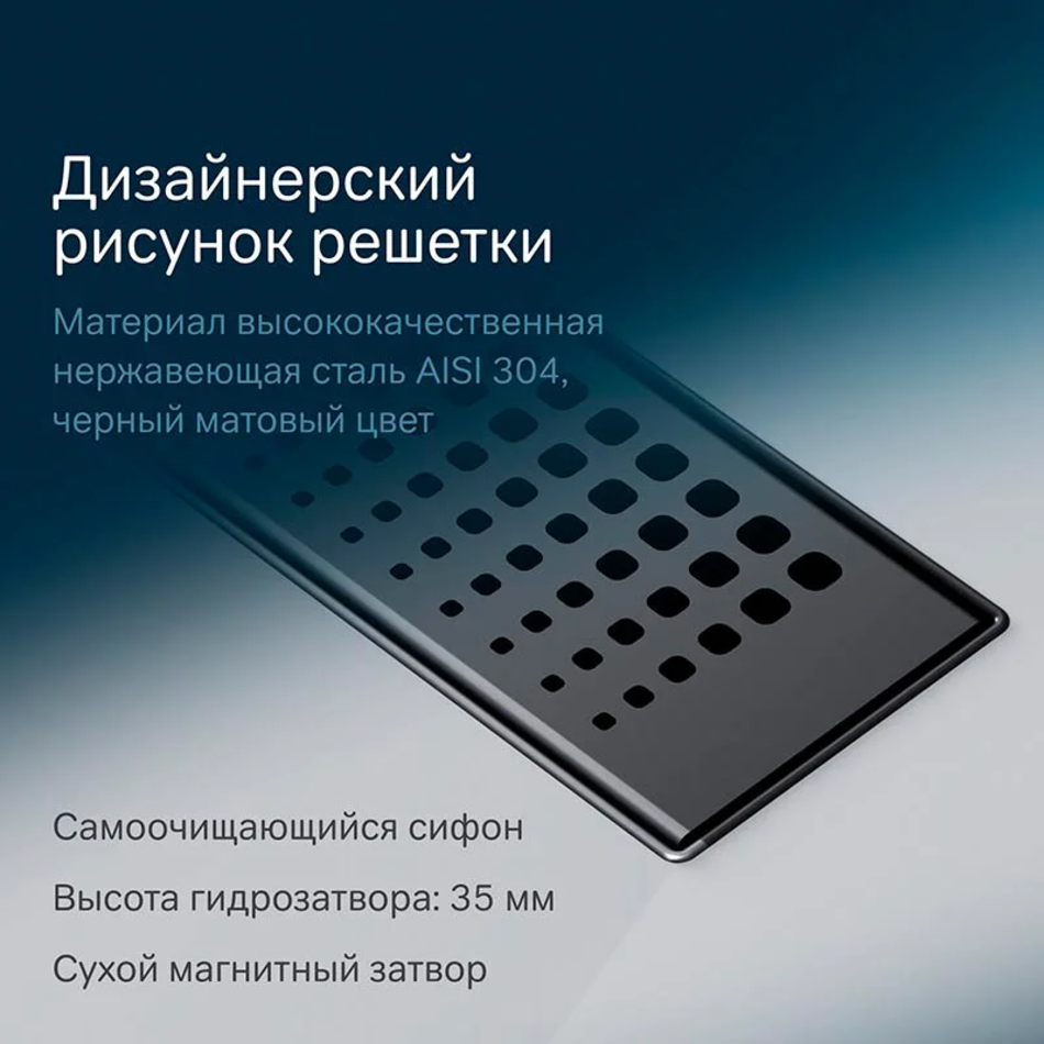 Дренажный канал Am.Pm MasterFlow W01SC-P11-060-01BM, 60 см, с решеткой, цвет черный матовый
