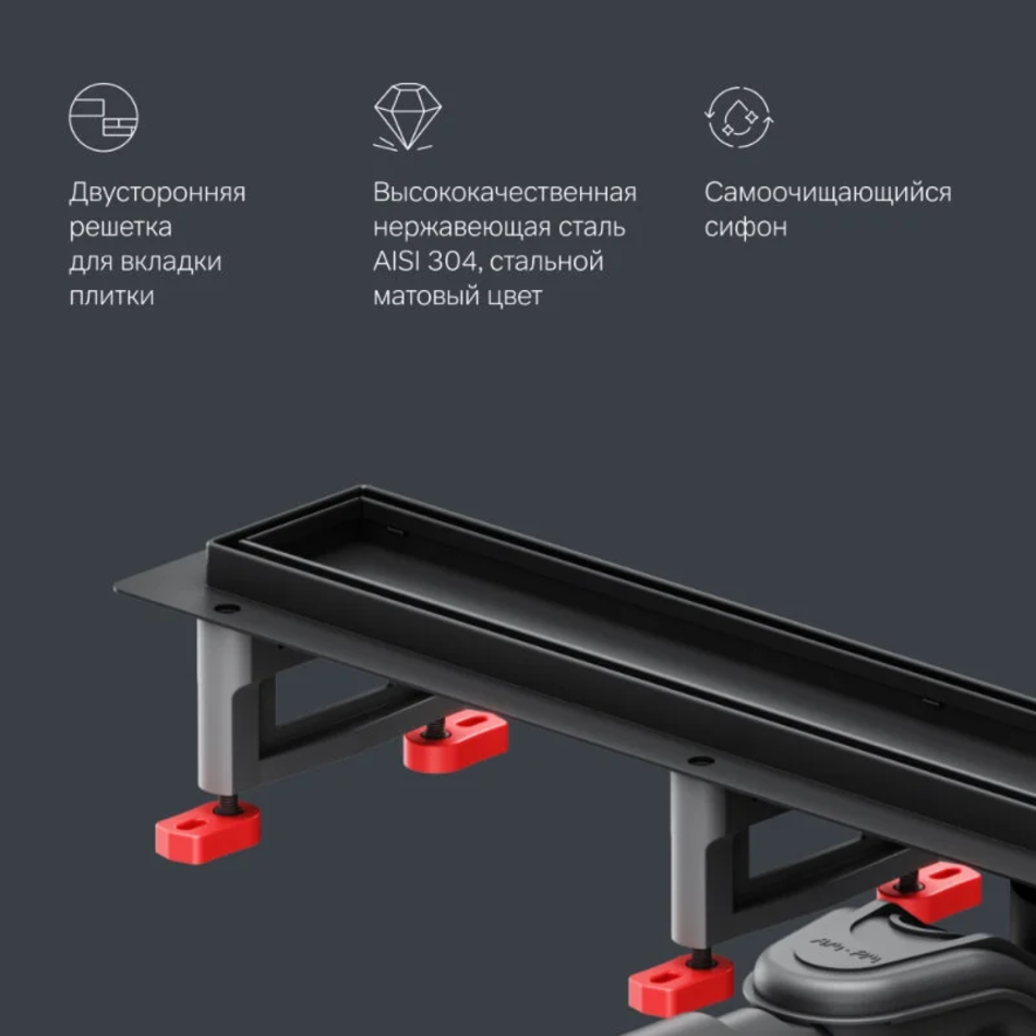 Дренажный канал Am.Pm MasterFlow W01SC-U11-070-04BM, 70 см, с решеткой, цвет черный матовый