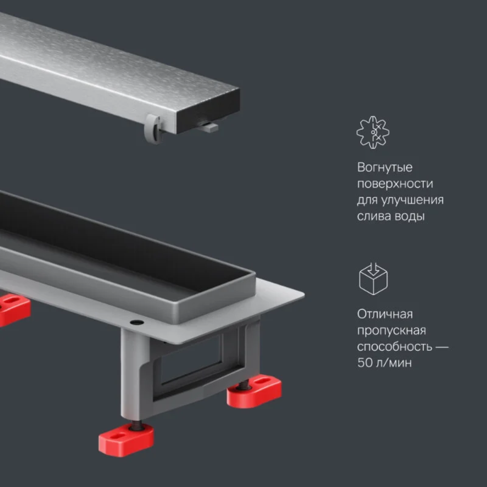 - внутренняя конструкция лотка с уклоном для более эффективного водоотведения;