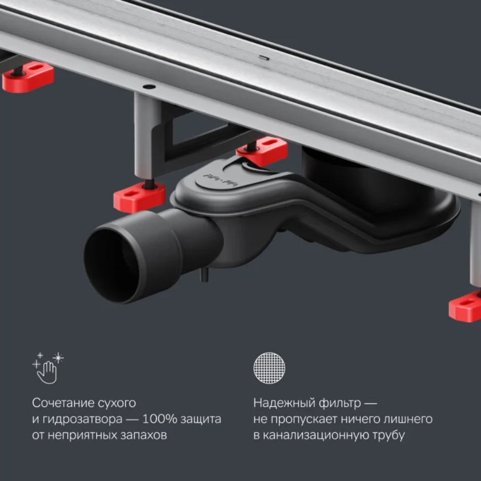 - трап лаконично впишется в дизайн вашей душевой благодаря наличию двухсторонней решетки;