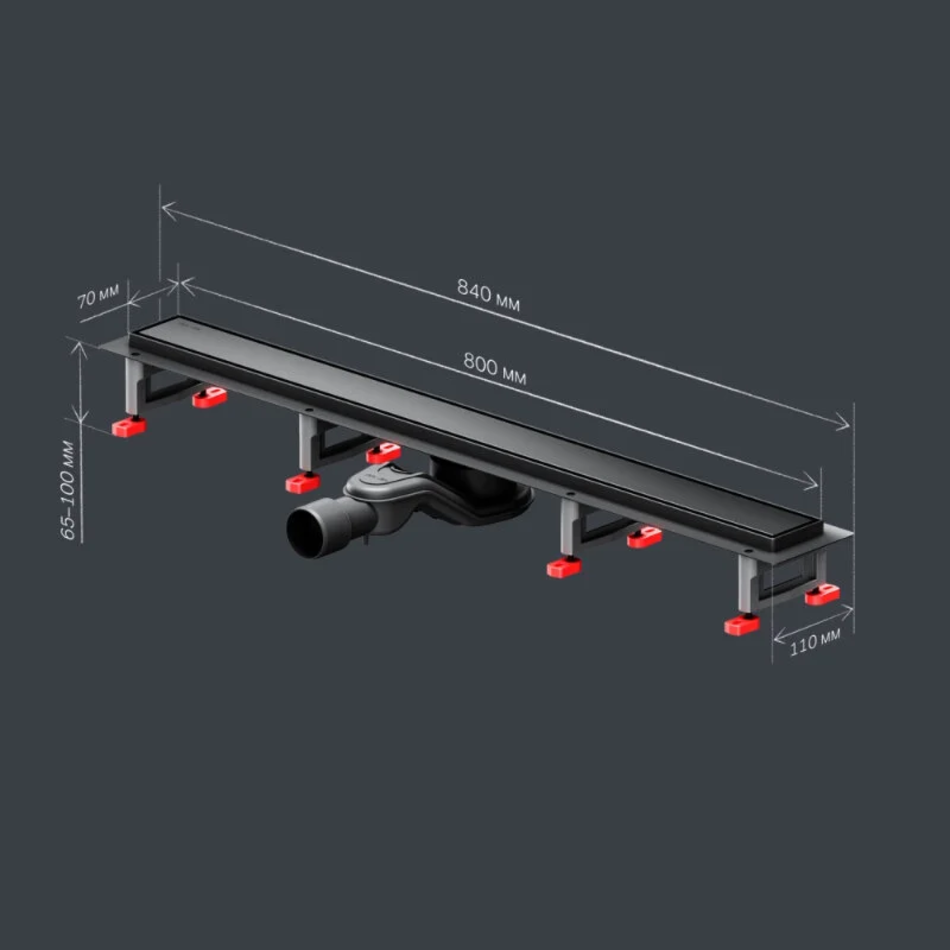 Дренажный канал Am.Pm MasterFlow W01SC-U11-080-04BM, 80 см, с решеткой, цвет черный матовый