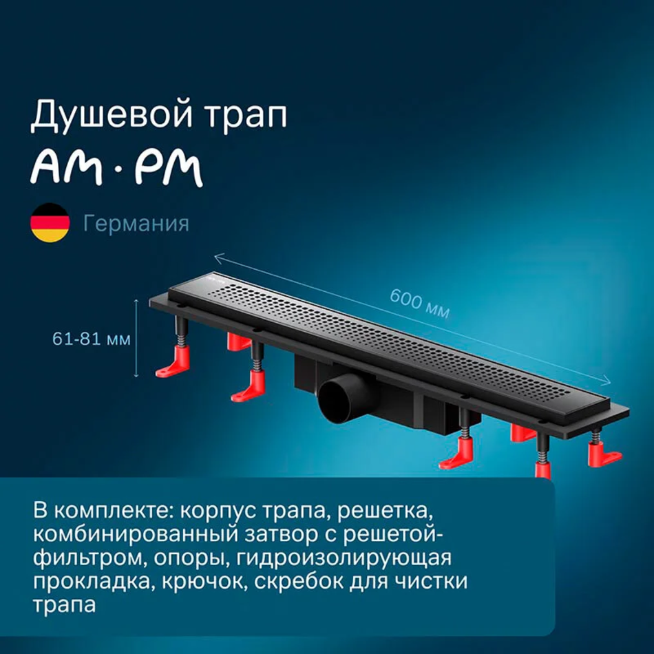 Дренажный канал Am.Pm PrimeFlow W02SC-P11-060-01BM, 60 см, с решеткой, цвет черный матовый