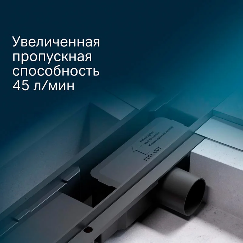 Невероятно высокая скорость слива — 45 л/мин благодаря двухкамерному комбинированному затвору. Надежность и долговечность изделия. Легкое обслуживание трапа: простая разборка и чистка сифона.