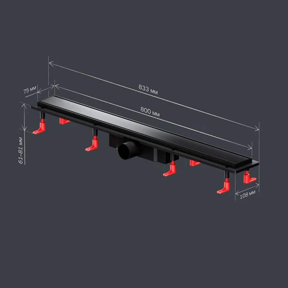 Дренажный канал Am.Pm PrimeFlow W02SC-U11-080-04BM, 80 см, под плитку, цвет черный матовый