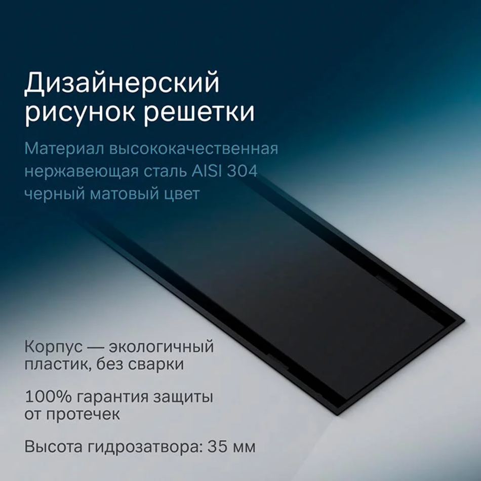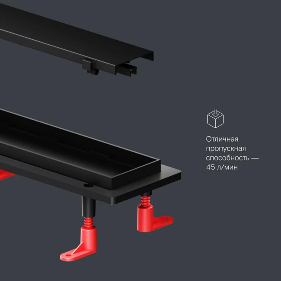 Продукт обладает низкой высотой монтажа и возможностью регулировки, что предполагает экономию бюджета при заливке пола. Трап имеет инновационную конструкцию решетки с фильтром, что значительно увеличивает межсервисный интервал.