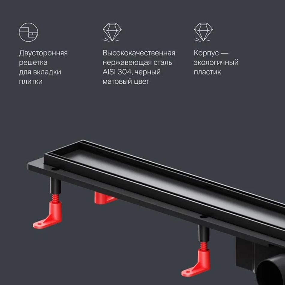 Дренажный канал Am.Pm PrimeFlow W02SC-U11-090-04BM, 90 см, под плитку, цвет черный матовый