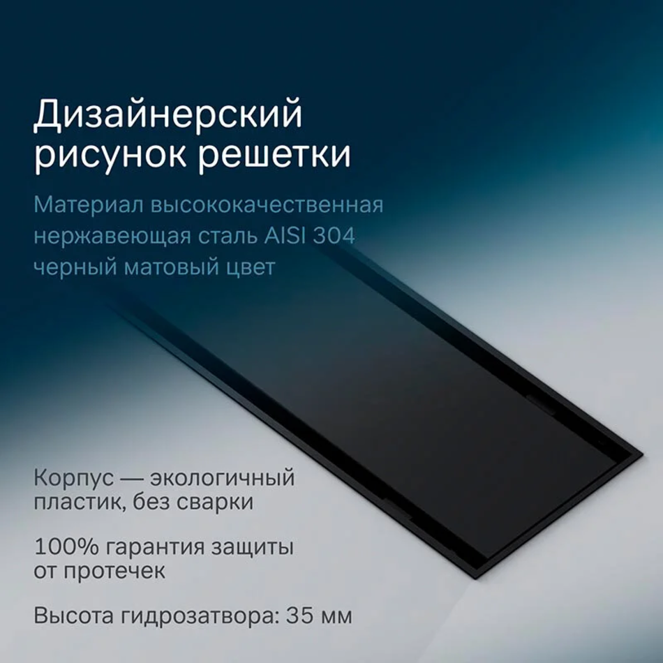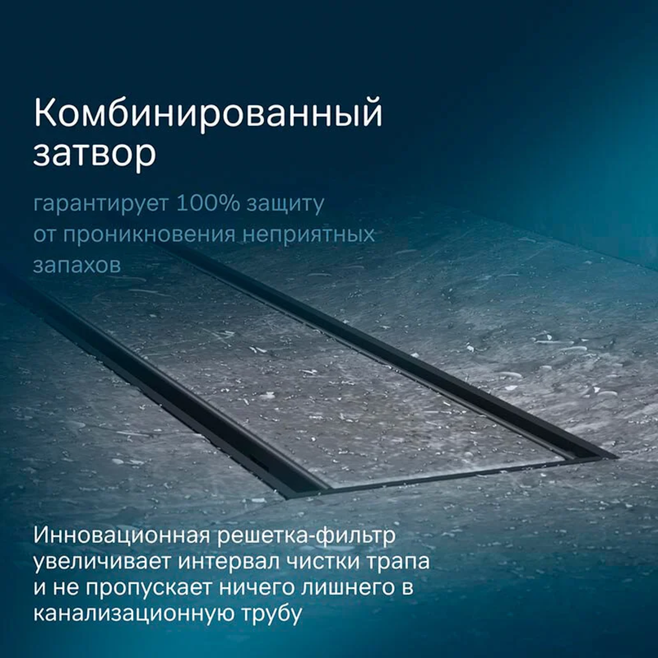 Продукт обладает низкой высотой монтажа и возможностью регулировки, что предполагает экономию бюджета при заливке пола. Трап имеет инновационную конструкцию решетки с фильтром, что значительно увеличивает межсервисный интервал.