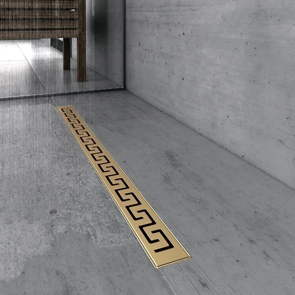 Дренажный канал Berges B1 Antik 800 092026, 80 см, выпуск вертикальный, решетка золото глянец